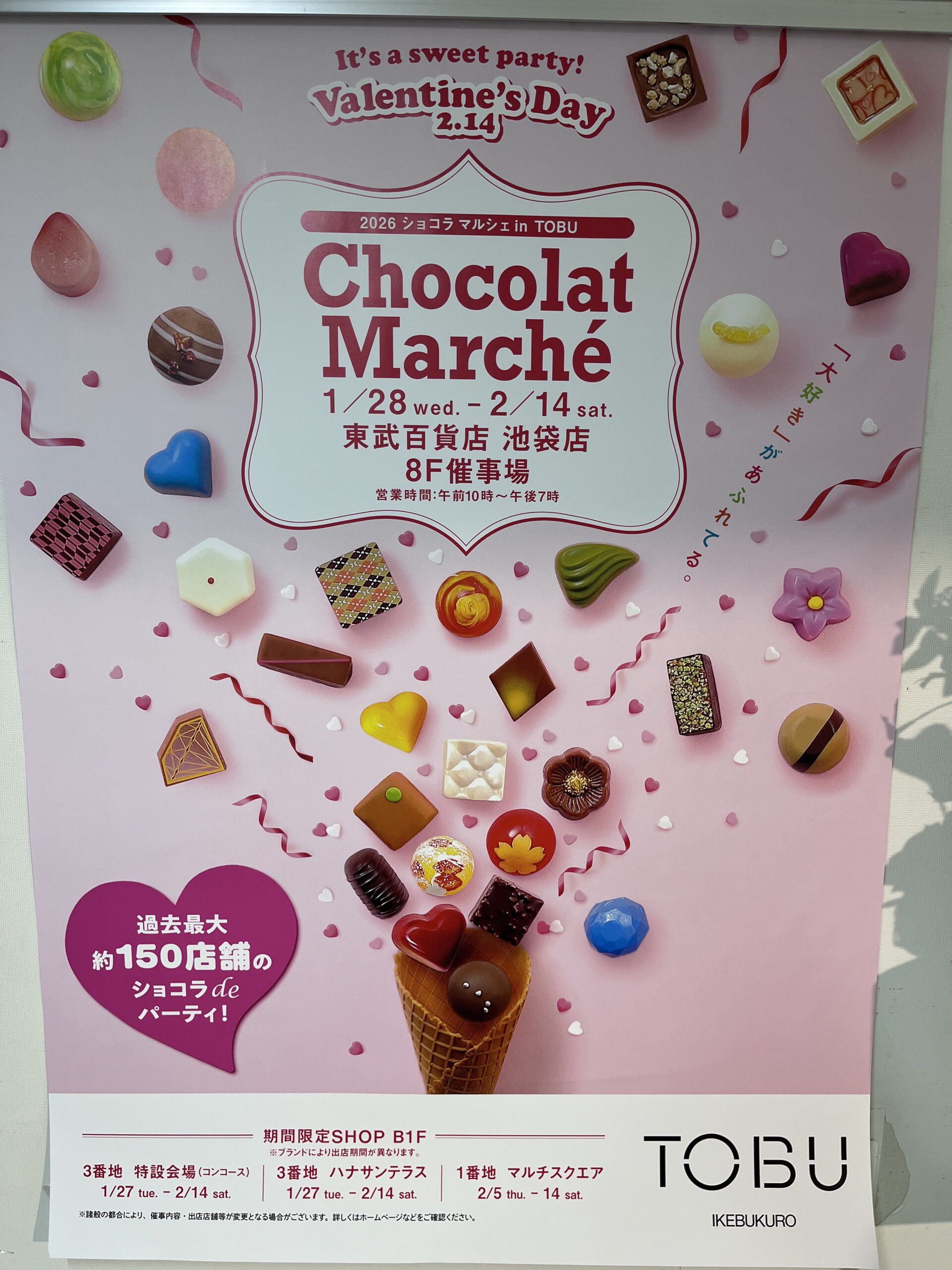 1月28日より東武百貨店池袋店にてバレンタインデー向けての恒例企画ショコラ マルシェが始まりました。