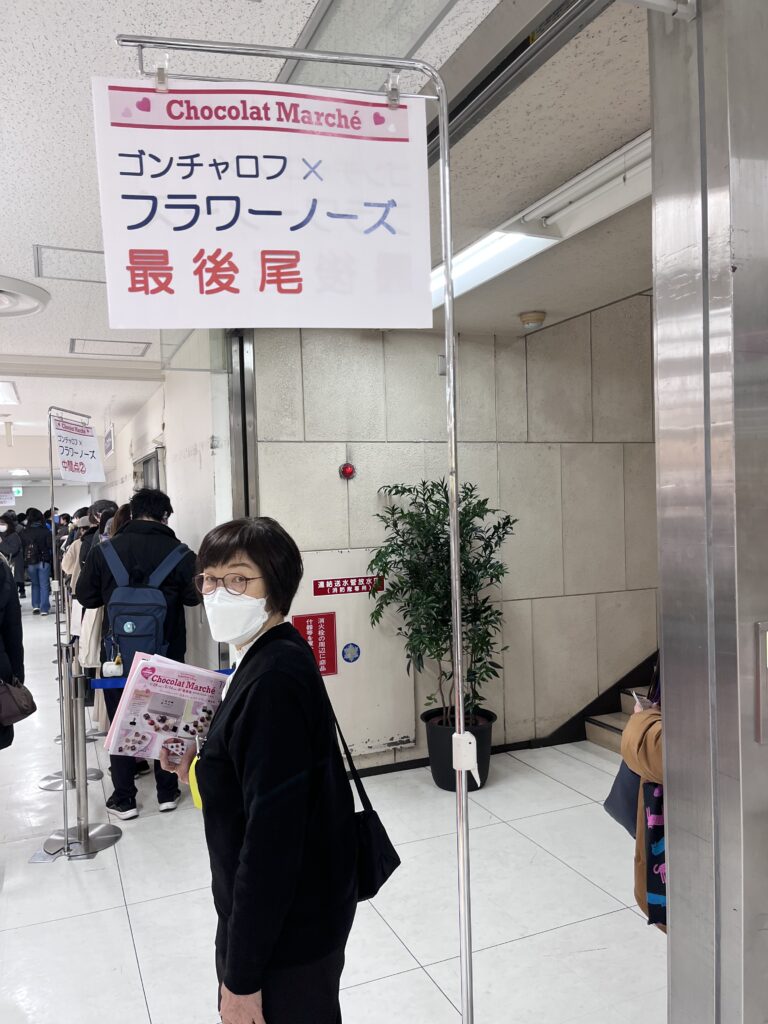 写真からは見切れていますが「ゴンチャロフ×フラワーノーズ」の最後尾は階段の下に伸びています。