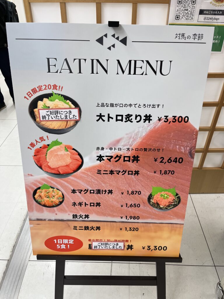 イートインでは対馬市の「対馬の季節」が海鮮丼を提供しています。