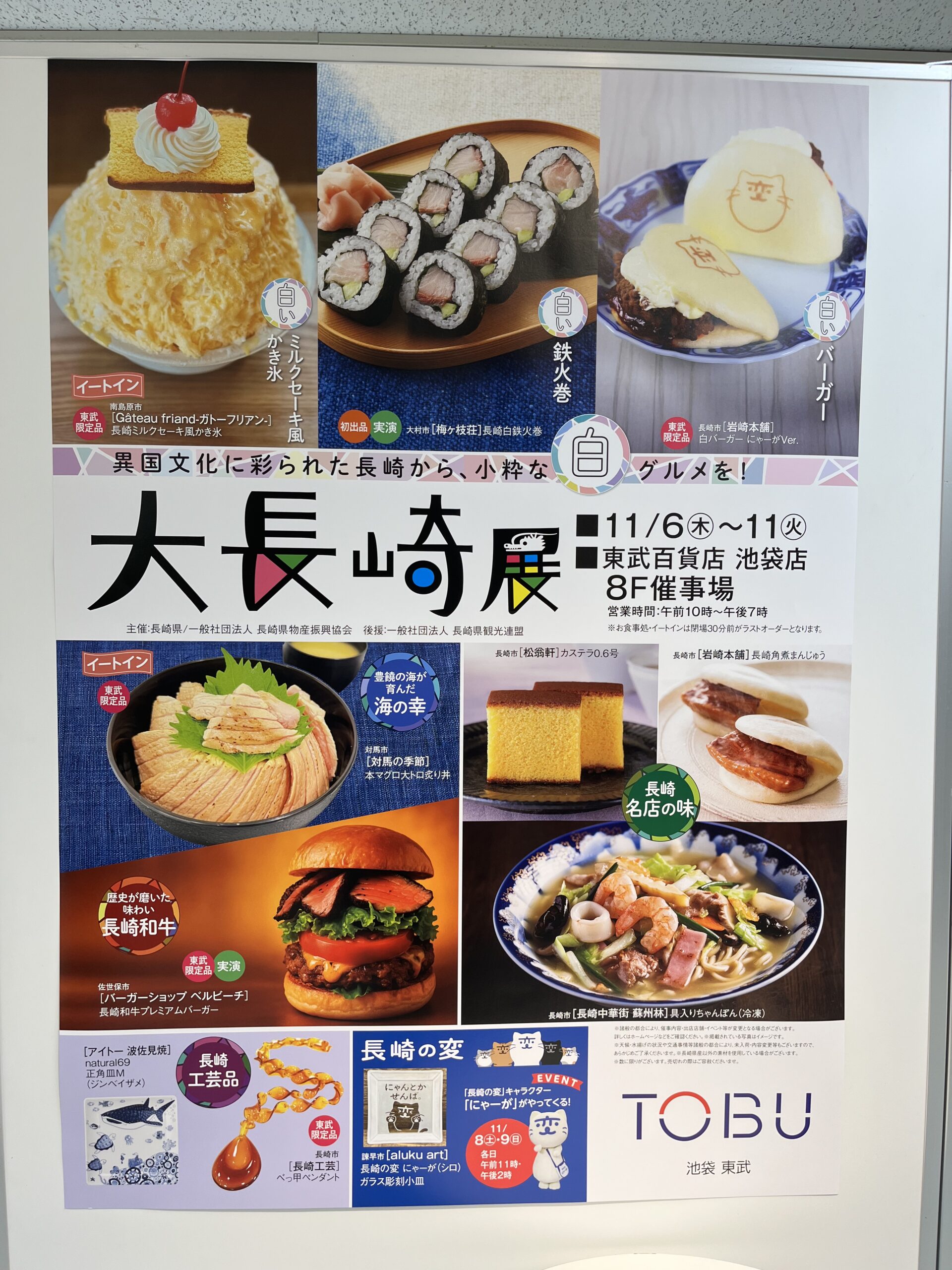 イベント2025年11月6日東武百貨店池袋店で大長崎展が始まりました。今回は「異国文化に彩られた長崎から、小粋な白グルメを!」というテーマで白にちなんだ美味しいものを紹介。