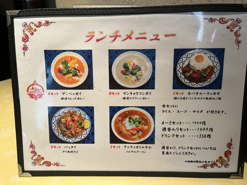 ランチメニューはA〜Eセットと週替わりセットがあります。
