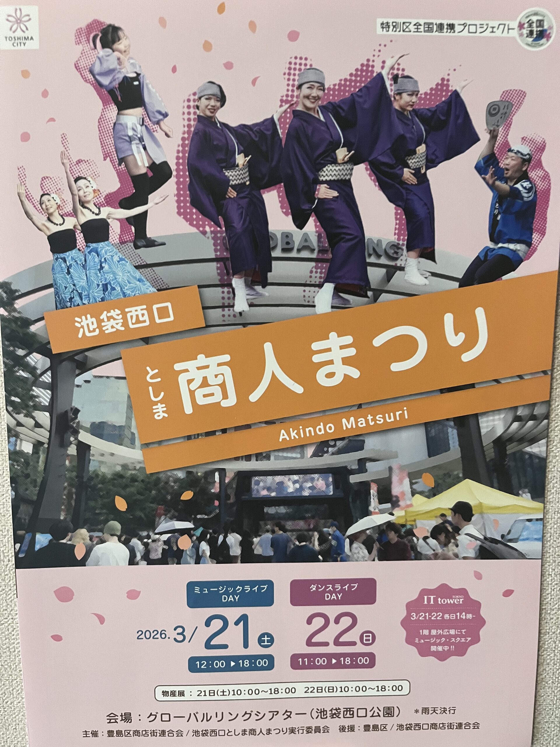 グローバルリンクシアター(池袋西口公園)で池袋西口としま商人まつりが3月21日・22日の2日間開催されます。としま商人まつりは平成11年度から豊島区商店街連合会が区内商店街及び地域経済の振興を図っているお祭りです。
