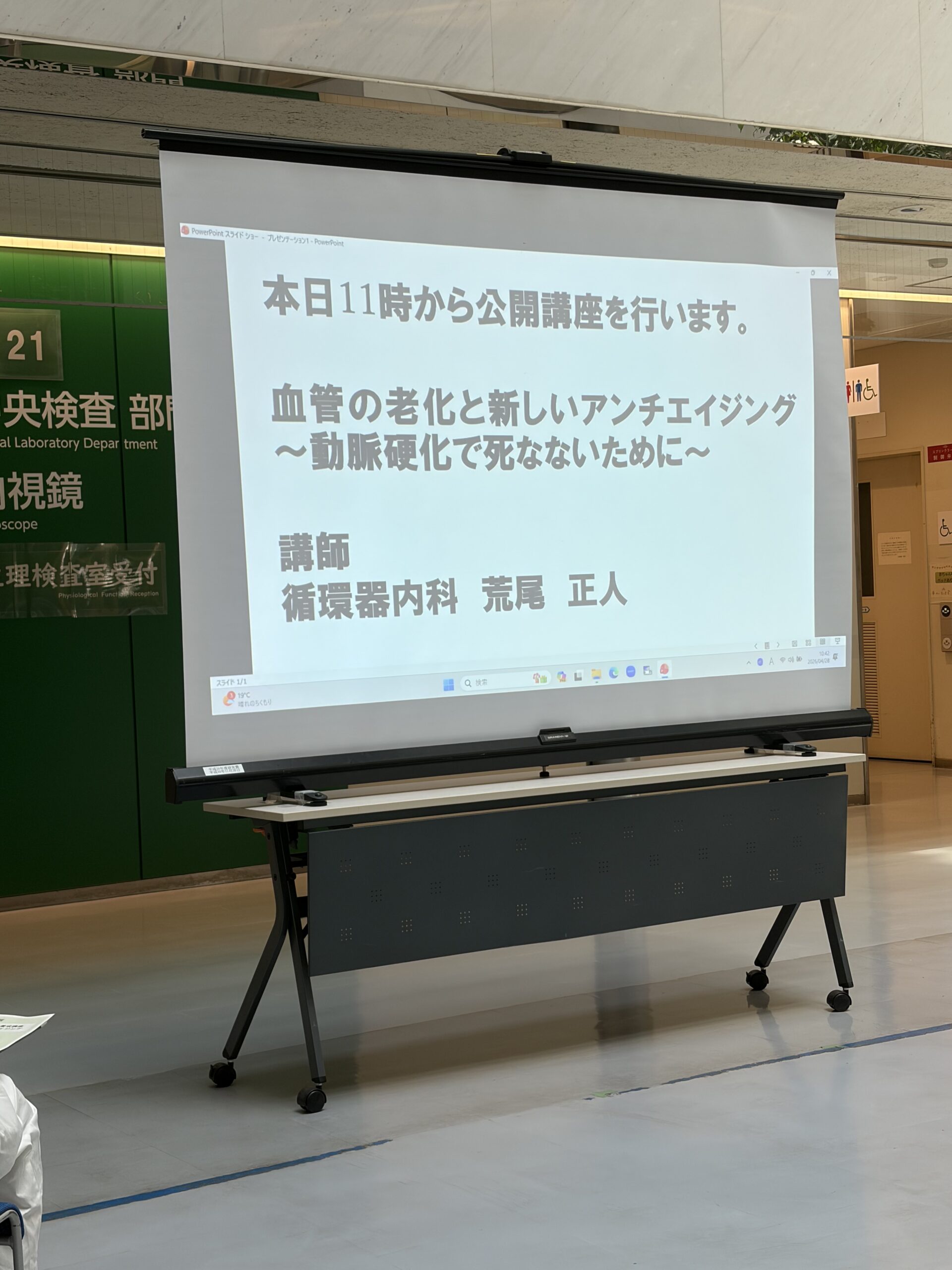 東京都立大塚病院が地域の住民に向けて病気や家庭で役立つ医学知識を解説してくれる公開講座に参加してきました。今回は「血管の老化と新しいアンチエイジング〜動脈硬化で死なないために〜」という演題で循環器内科医長の荒尾先生からお話がありました。