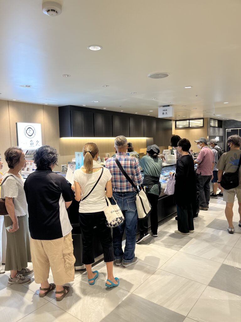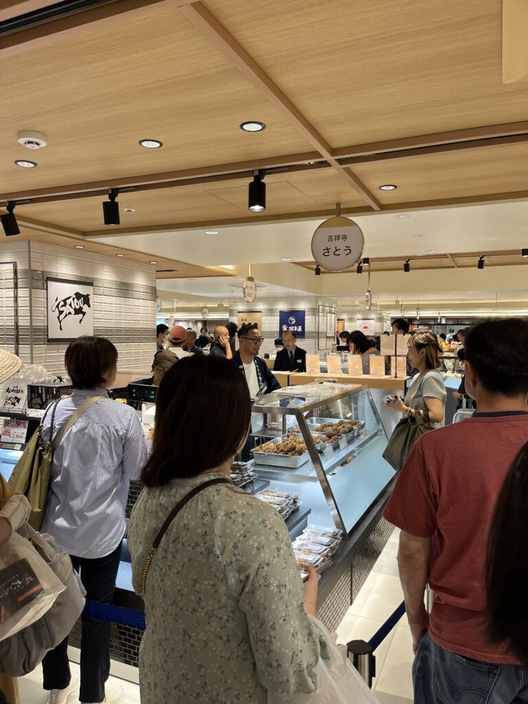 どのお店も賑わっていましたが特に行列が目立ったのは「吉祥寺さとう」「魚久」の二つ。長い行列が区切られて並んでいました。まずは吉祥寺さとうの行列。