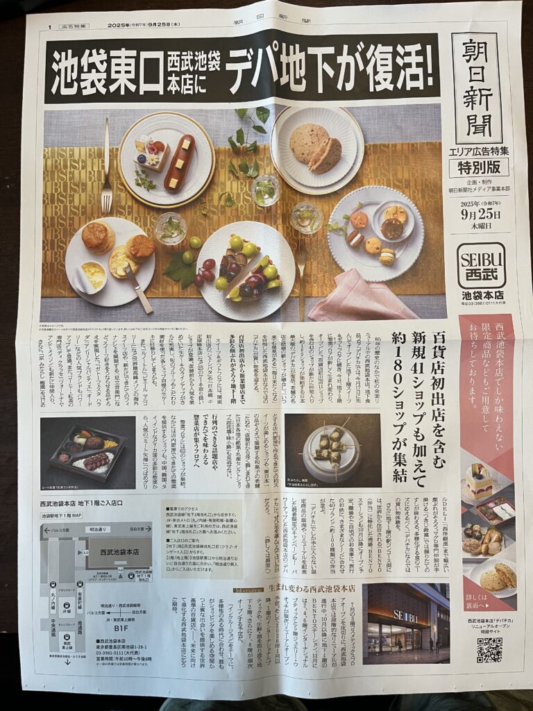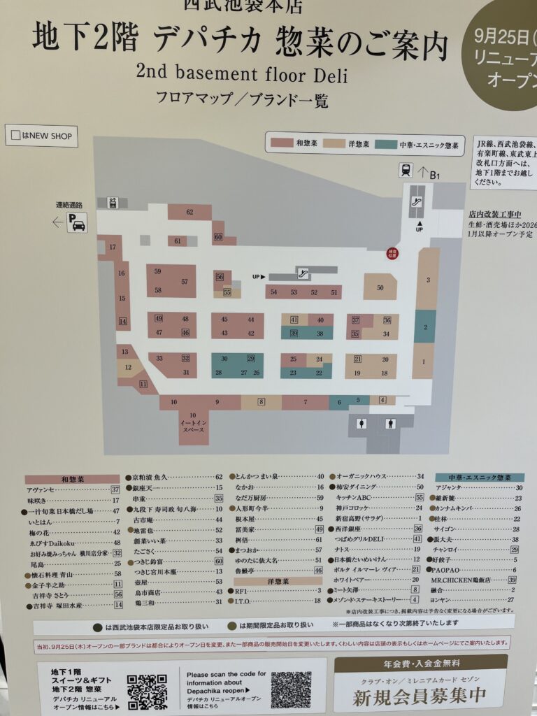 2025年9月25日西武百貨店池袋店B2階惣菜フロアがリニューアルしたので行ってきました。B1階は9月18日に先にオープンしています。池袋駅前で号外風の広告も配布していました。