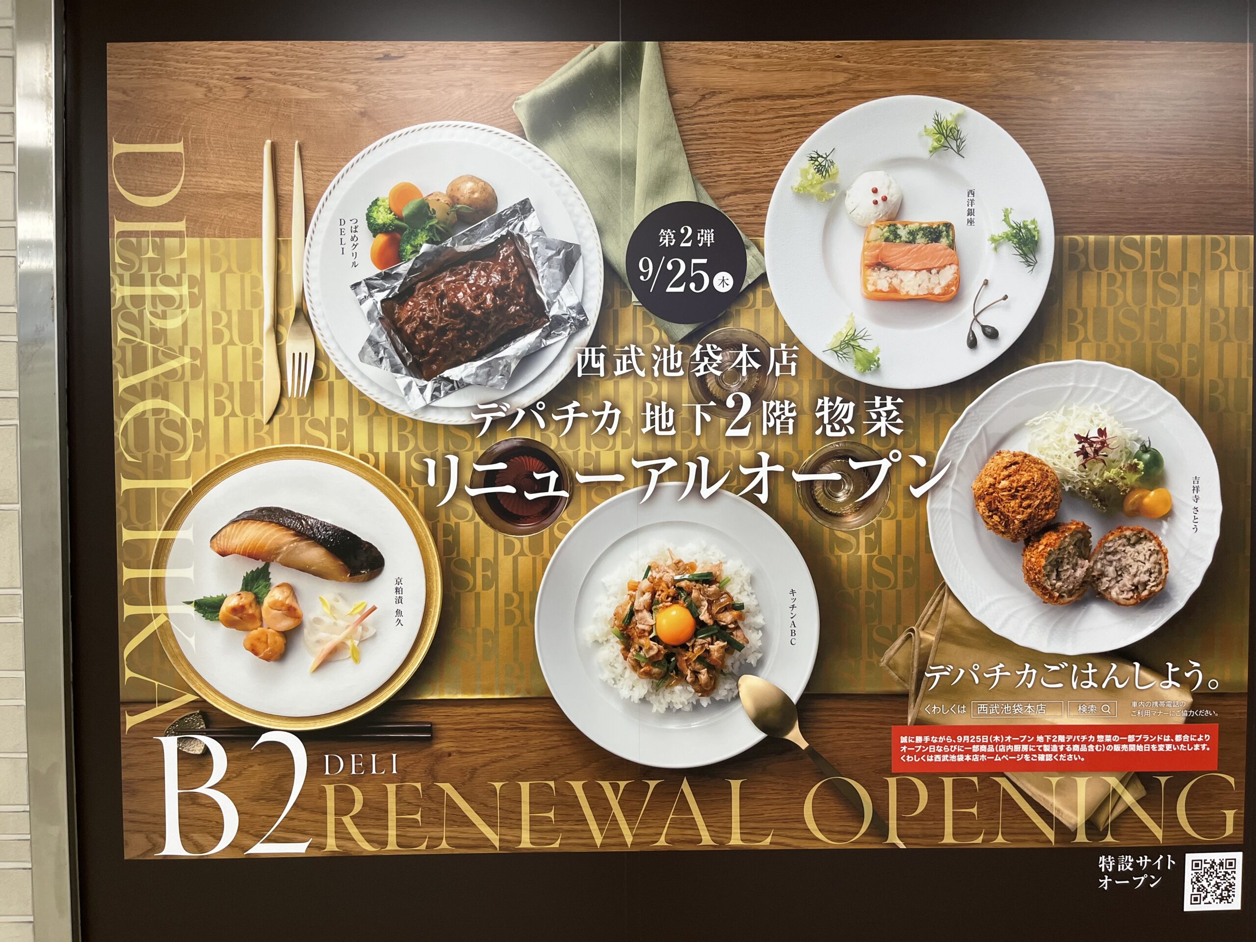 2025年9月25日西武百貨店池袋店B2階惣菜フロアがリニューアルしたので行ってきました。B1階は9月18日に先にオープンしています。池袋駅前で号外風の広告も配布していました。