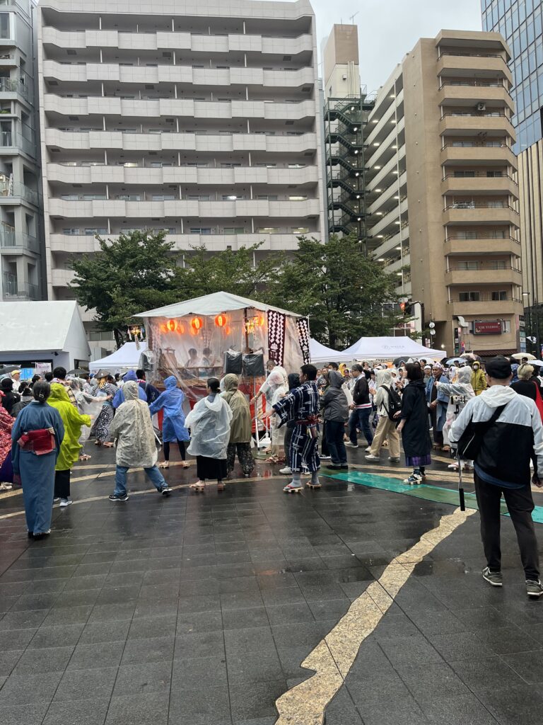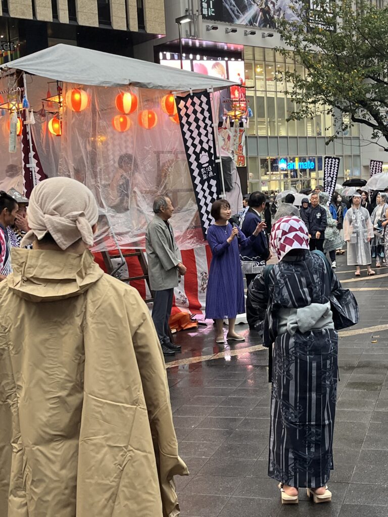 生憎の小雨模様の会場でしたが高際豊島区長の挨拶、本場郡上白鳥から保存会の「おどり教室」があり多くの人々が櫓の周りで郡上おどりに加わりました。