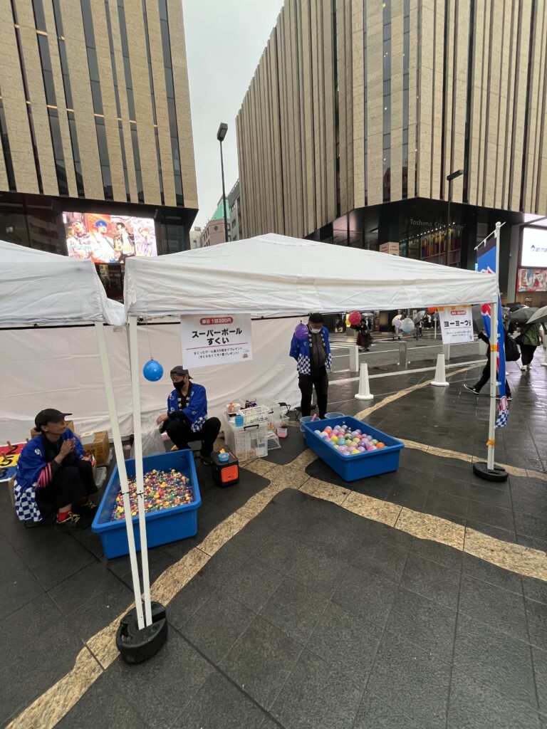 グルメ以外も射的・輪投げ・スーパーボールすくい・ヨーヨーつりのコーナーも設けられていましたが、小雨のため人出は今ひとつのようでした。