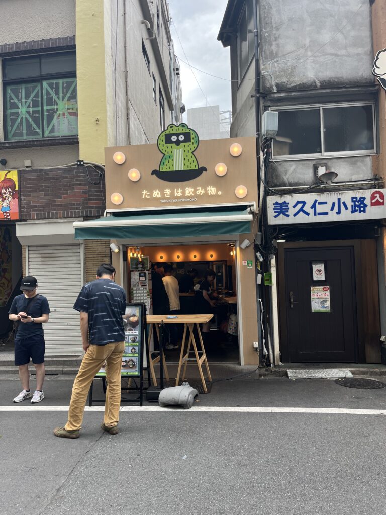 並んでいる方はチラシを持っており、「カレーは飲み物」などを展開する株式会社のみものが本日たぬきそば専門店をオープン。今日から三日間(3月27日・28日・29日)は冷したぬきそば100食が半額サービスだそうです。店内は立ち席のみ6人ほどが入れます。