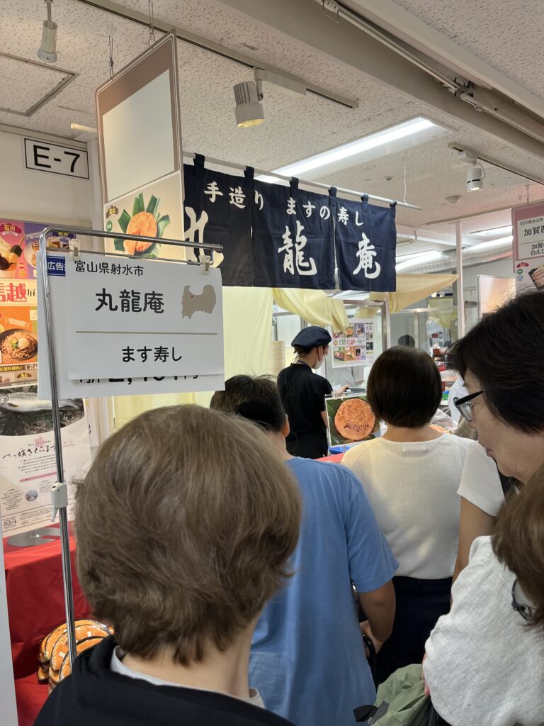 物販で目立っていたのは白えび冷やし天丼の「白えび亭」とます寿司の「丸龍庵」でした。