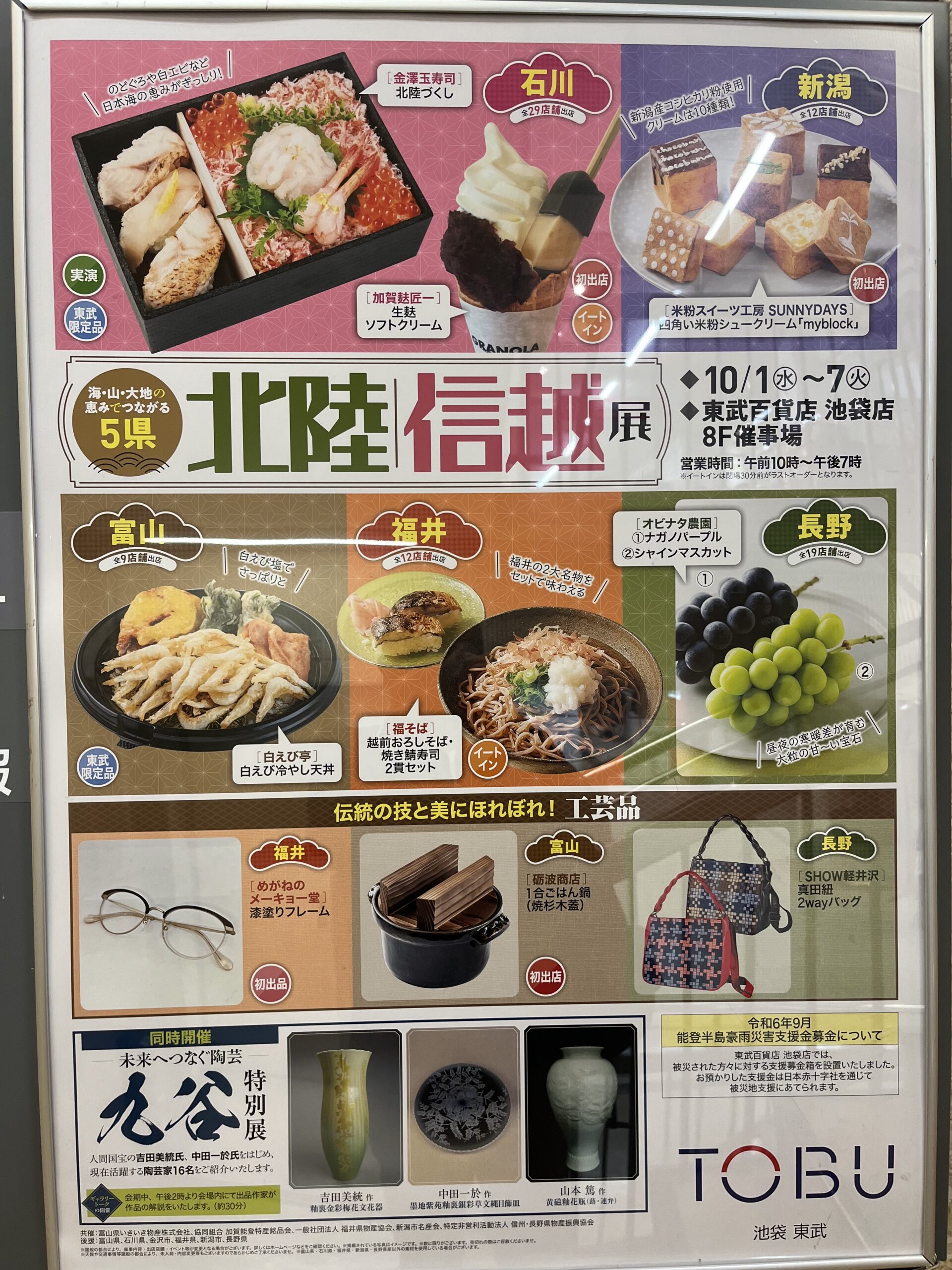 2025年10月1日より東武百貨店池袋店で「北陸 信越展」が始まりました。今回は海・山・大地の恵みでつながる5県と銘打ち石川県・福井県・富山県・長野県・新潟県の名産を紹介しています。