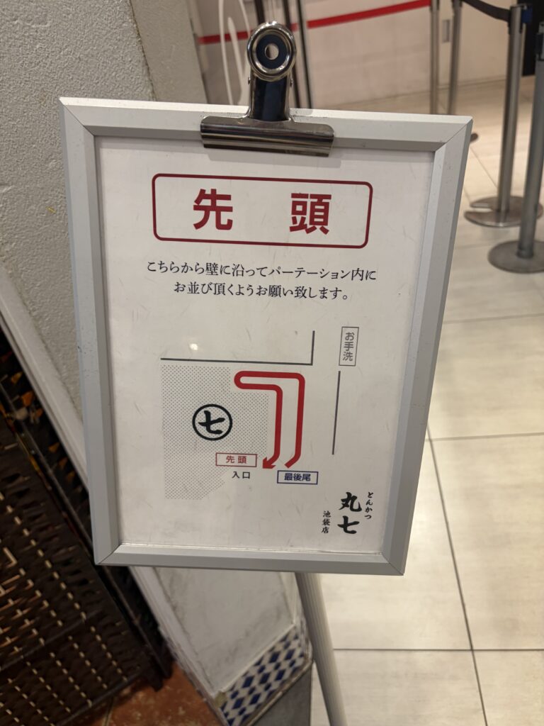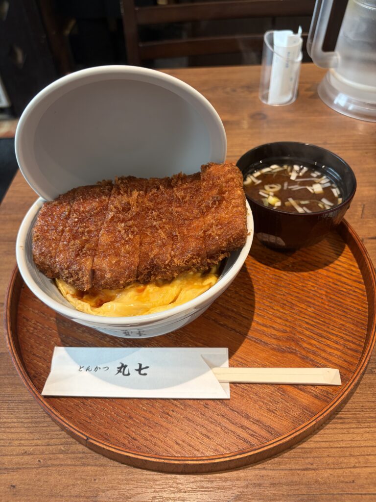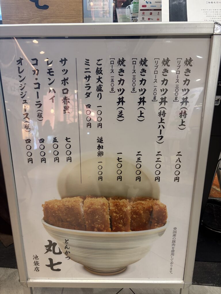 エソラ池袋のとんかつ丸七池袋店で卵でとじないかつ丼を食べてきました。何度か伺ってみたのですが行列の長さに諦めていましたが、今回は14時過ぎに行ったところ運よくあまり待たずに入店できました。店内はほとんどのお客さんが男性でした。